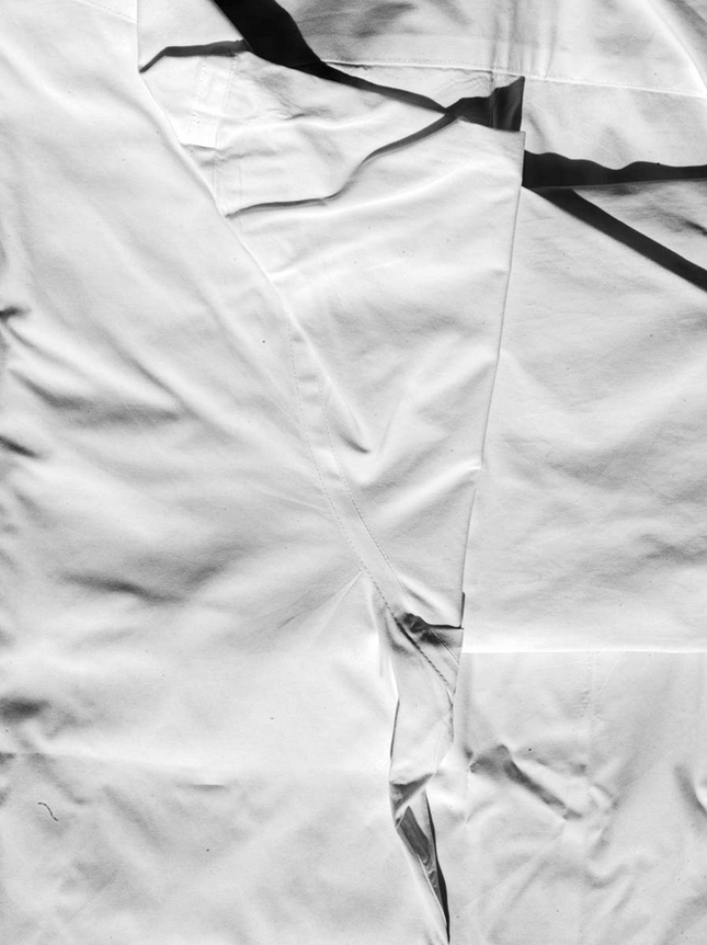 Rendered in a minimalist, abstract style, the images draw attention to surface, line, and light. The shirt’s shape sometimes dissolves into negative space or tonal gradients, allowing the photograph to function as both documentation and abstraction, recognizing the poetic potential of the familiar.